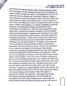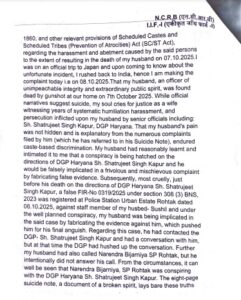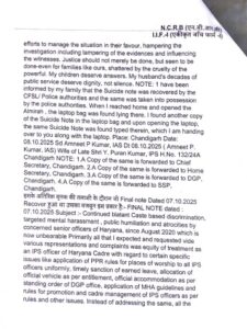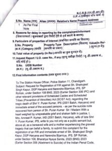 IPS Puran Kumar suicide case : हरियाणा के वरिष्ठ IPS अधिकारी वाई. पूरन कुमार की आत्महत्या मामले में चंडीगढ़ पुलिस की ओर से दर्ज की गई एफआईआर अब सामने आ गई है। पुलिस की ओर से 21 पन्नों में यह एफआईआर दर्ज की गई है। बता दें कि पूरन कुमार की पत्नी और हरियाणा सरकार में वरिष्ठ IAS अधिकारी अमनीत पी. कुमार पुलिस की ओर से दर्ज की गई एफआईआर पर सवाल उठा चुकी है। आप भी पढ़िए कि आखिर इस एफआईआर में क्या दर्ज किया गया है…?